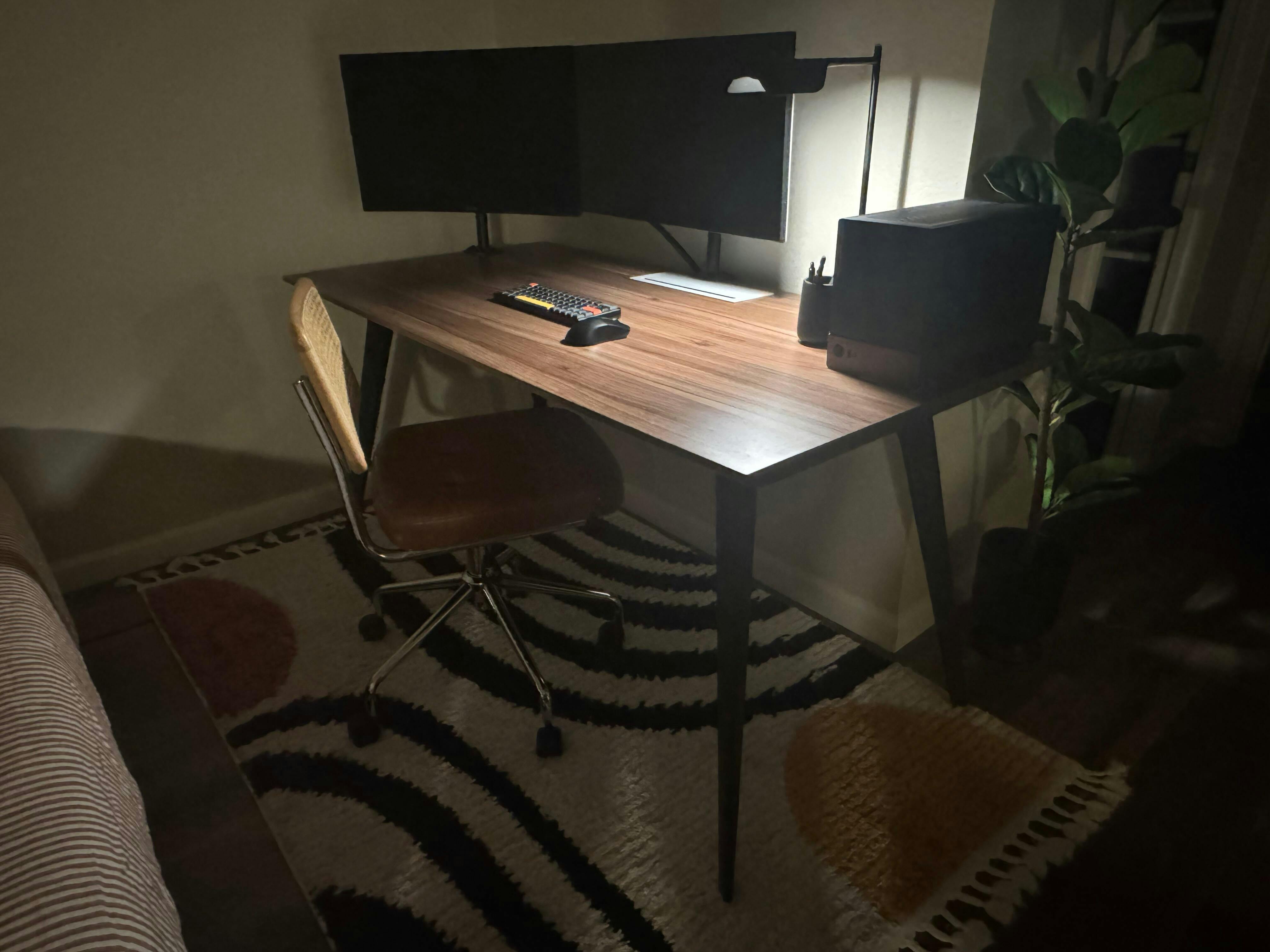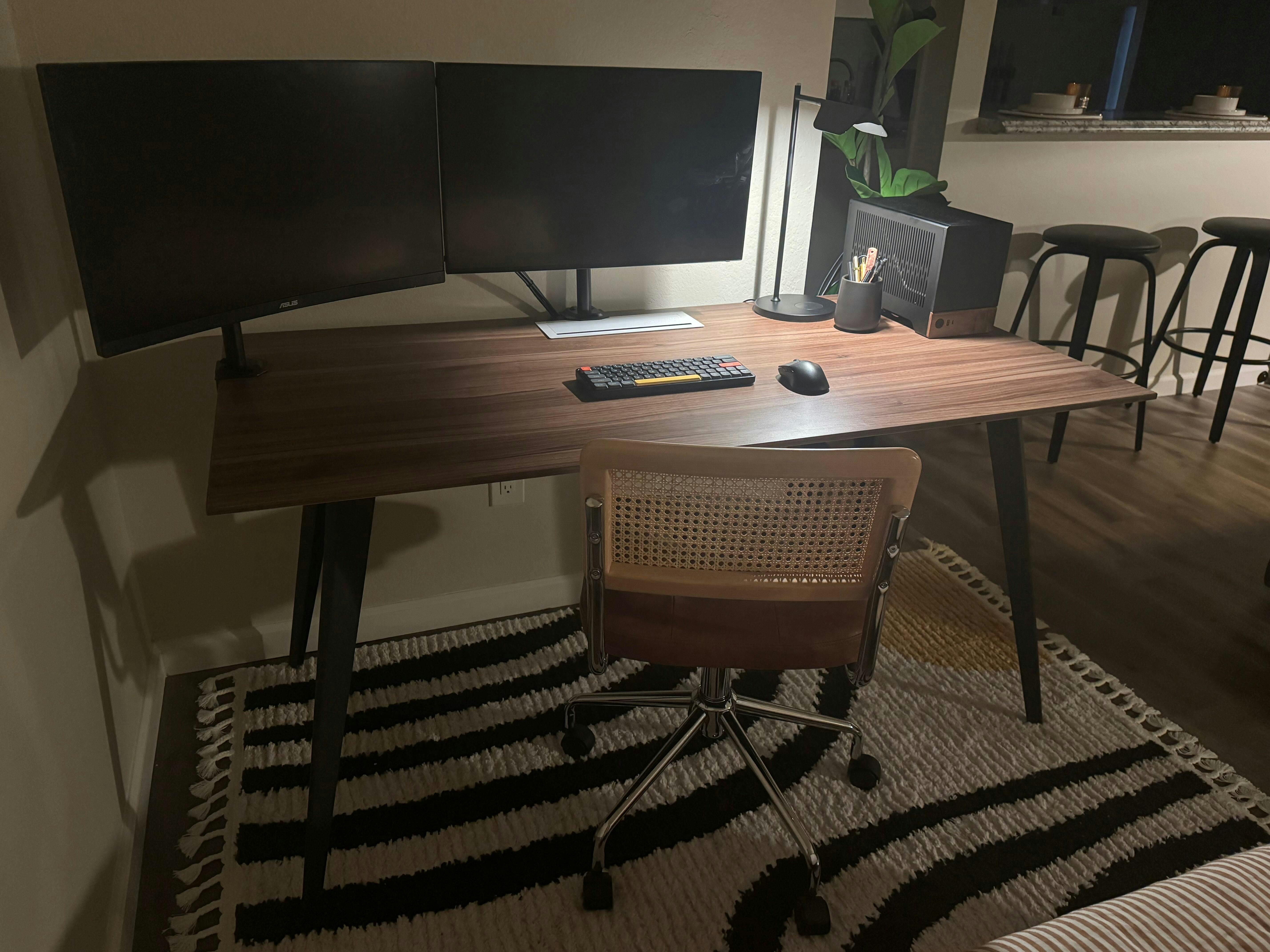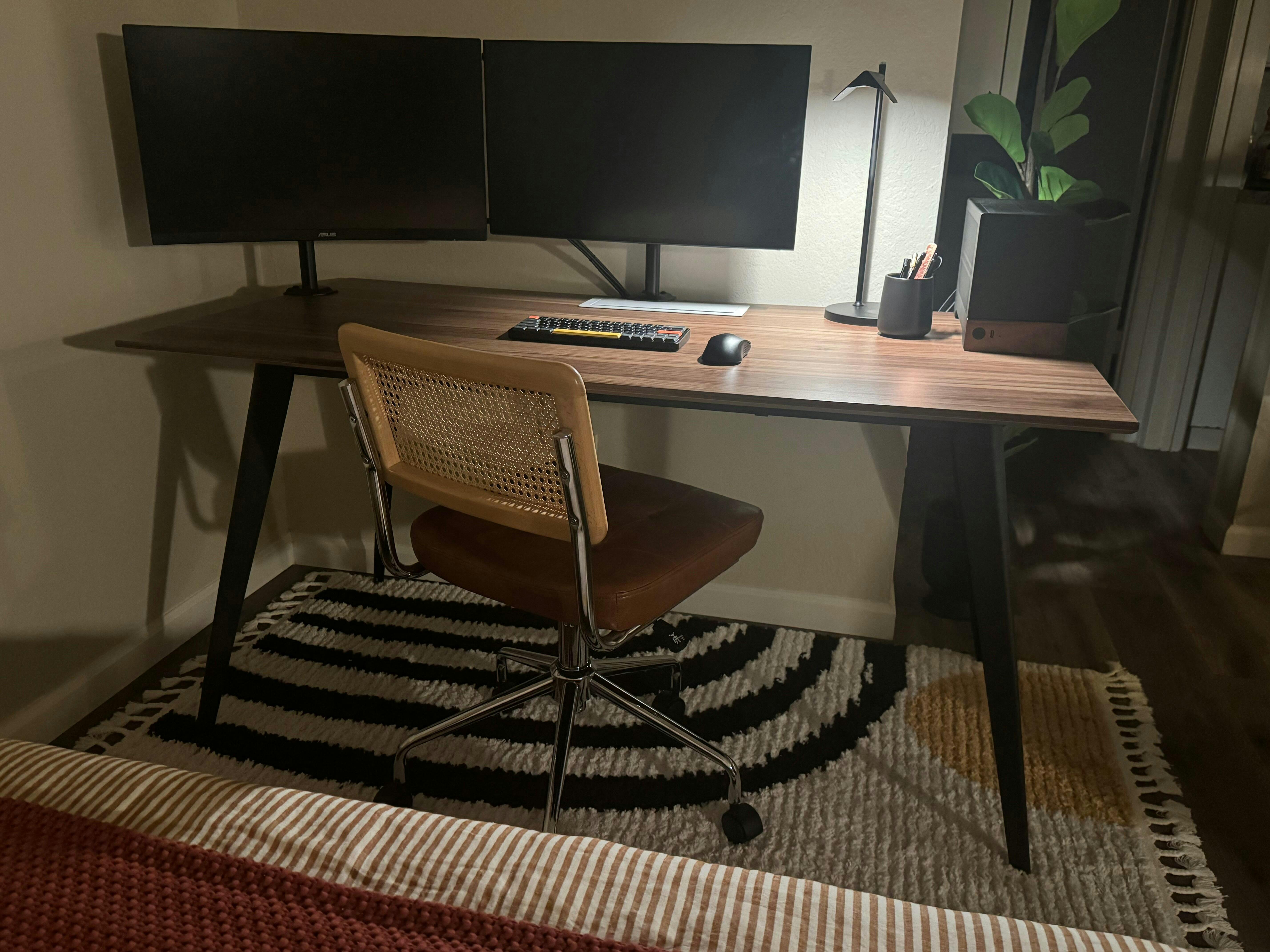 A versatile desktop featuring a sleek, minimalist design with stylish flared legs for optimal space below. Available in two size options to best suit your workspace needs. Optional in-desk power available.
