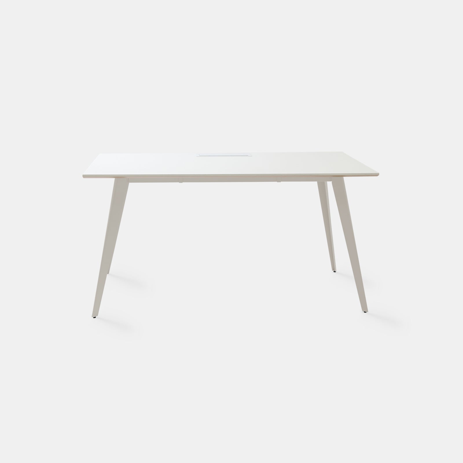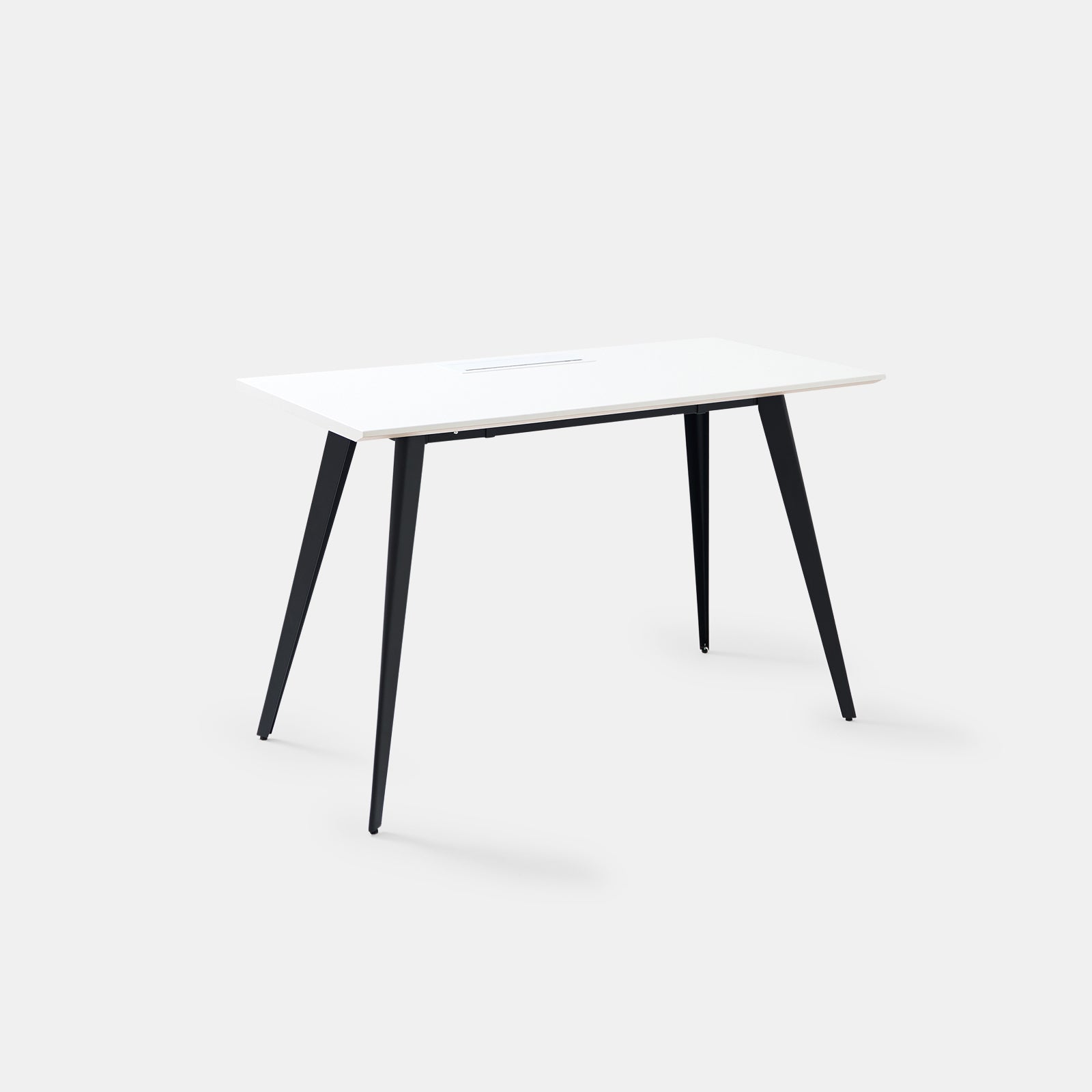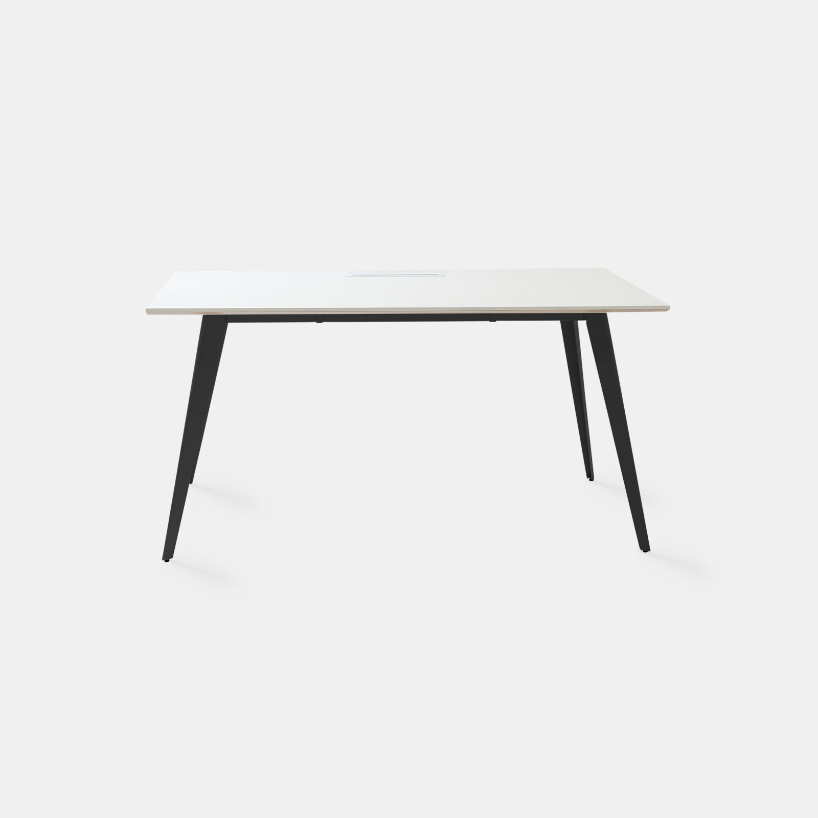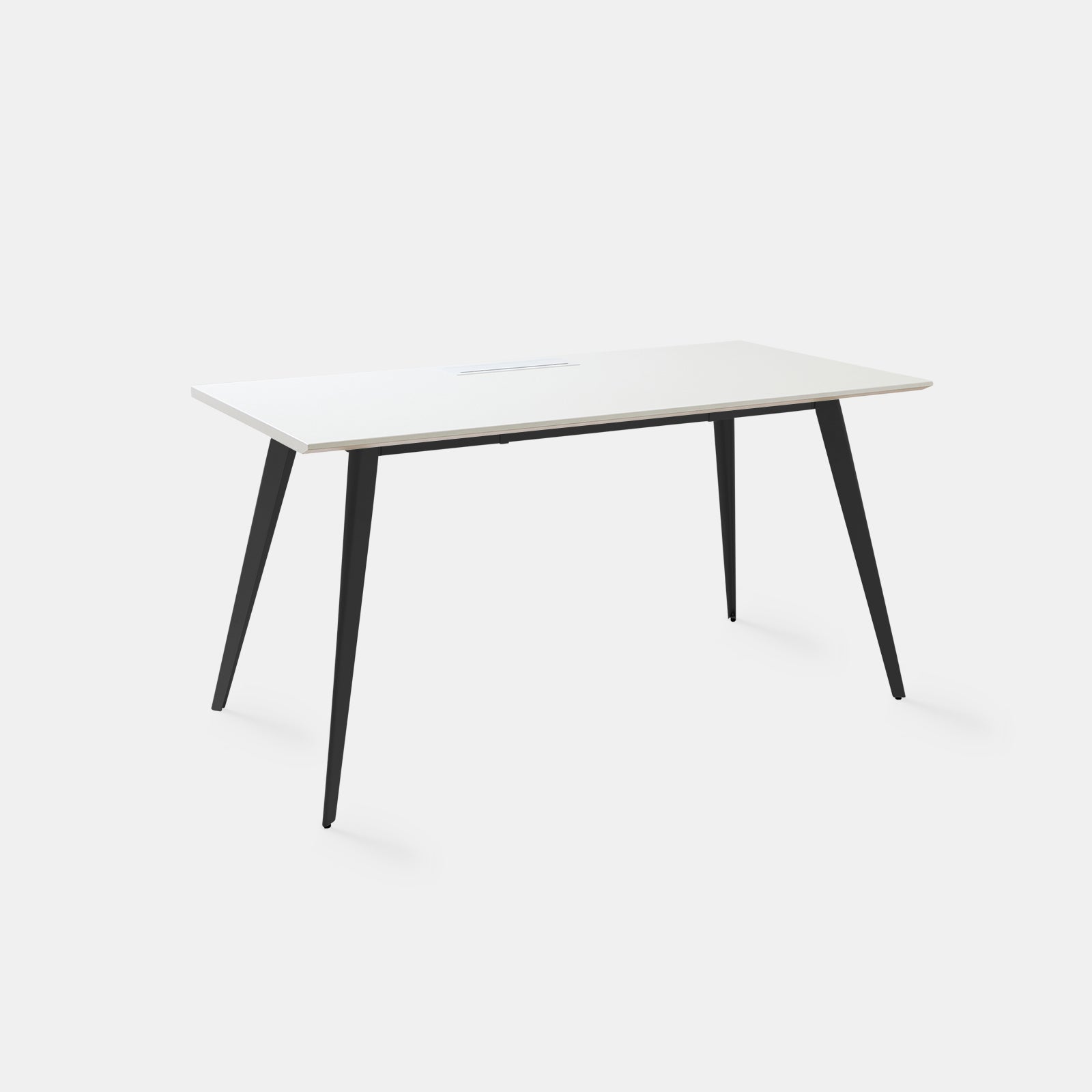A versatile desktop featuring a sleek, minimalist design with stylish flared legs for optimal space below. Available in two size options to best suit your workspace needs. Optional in-desk power available.