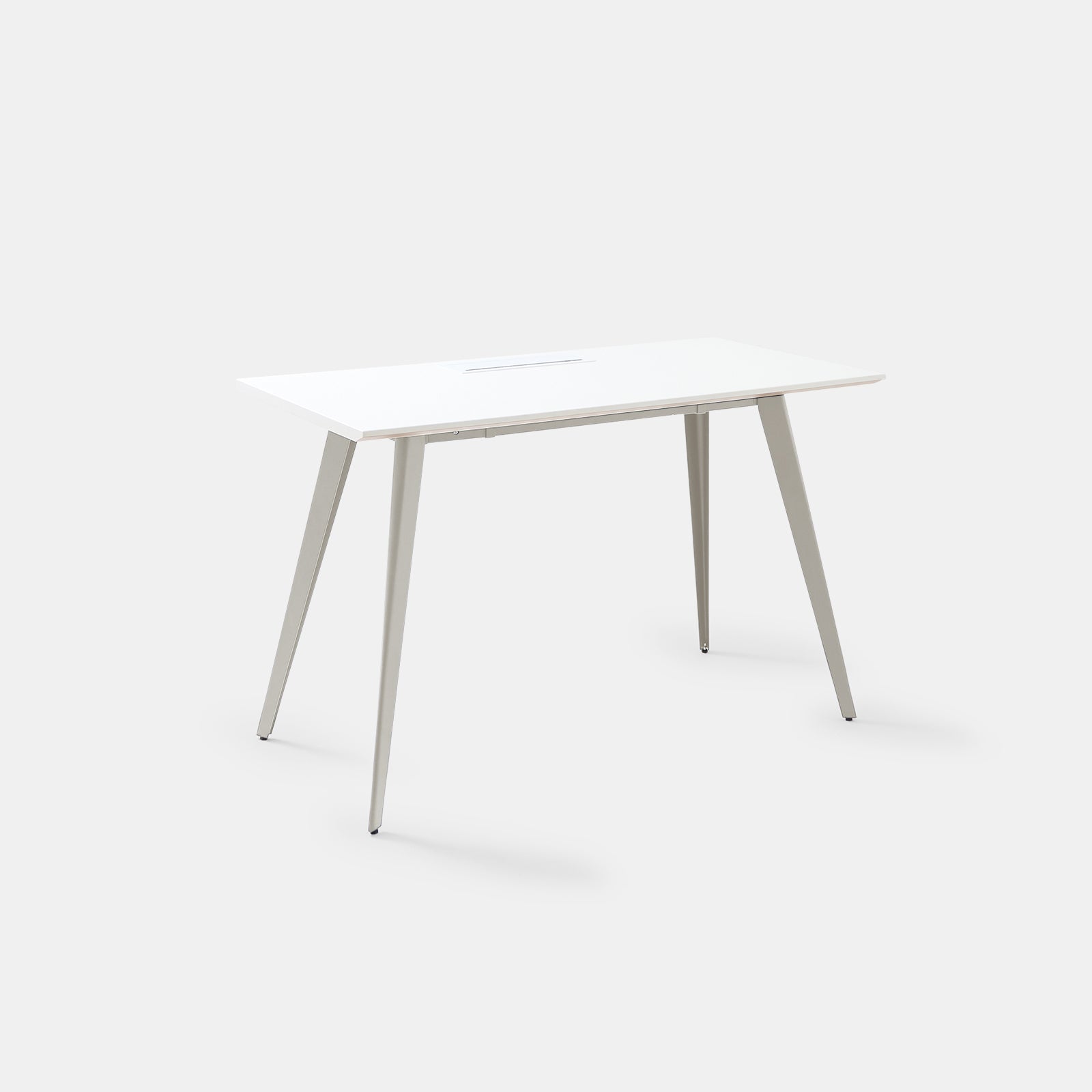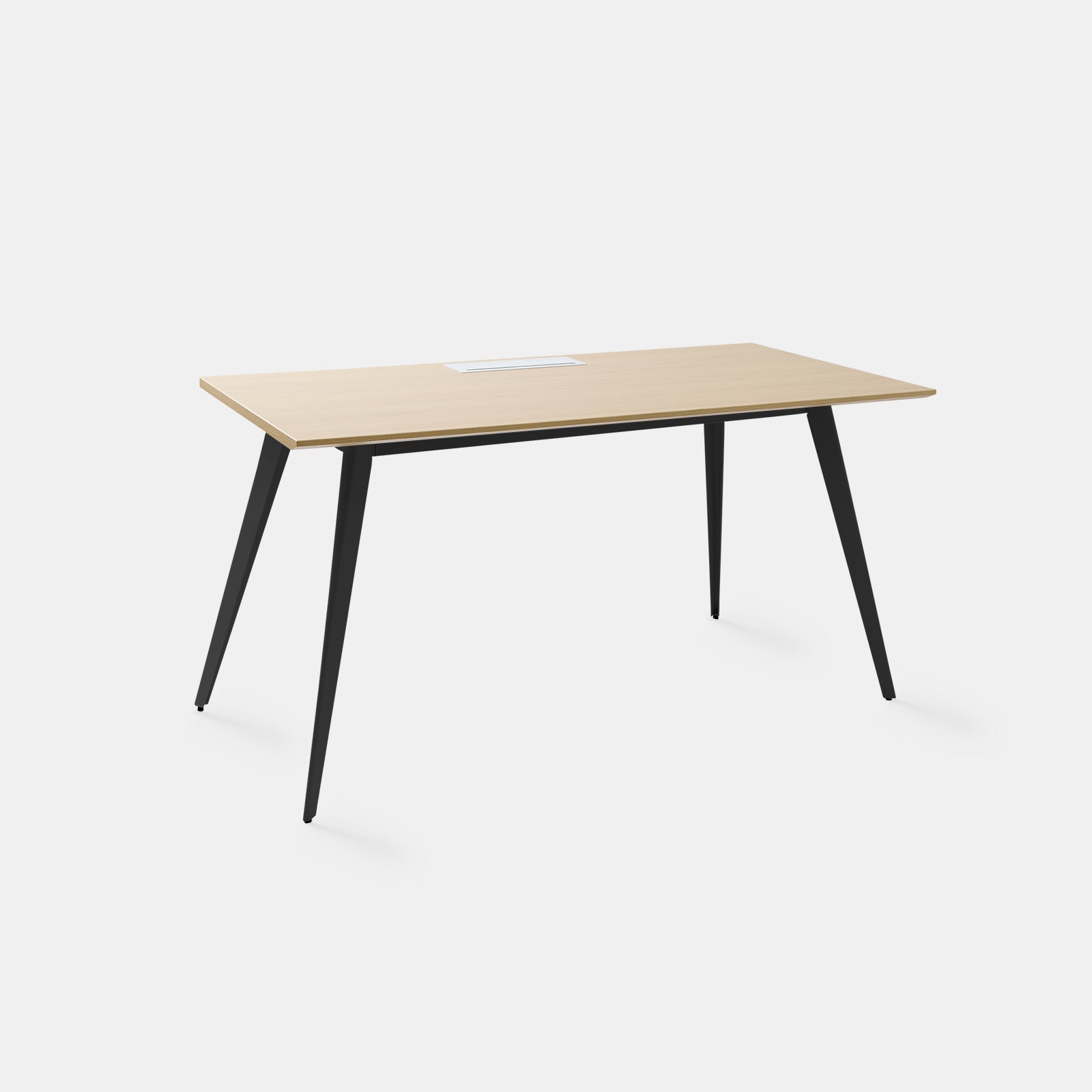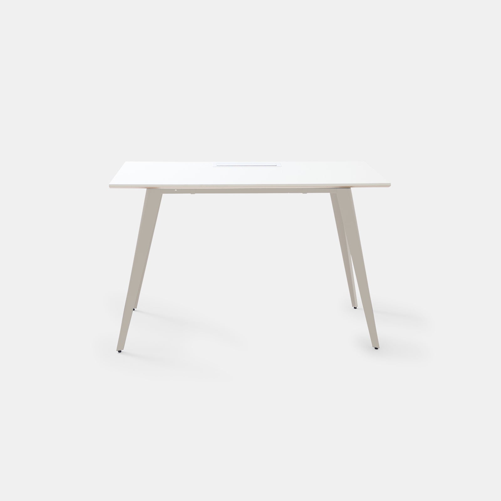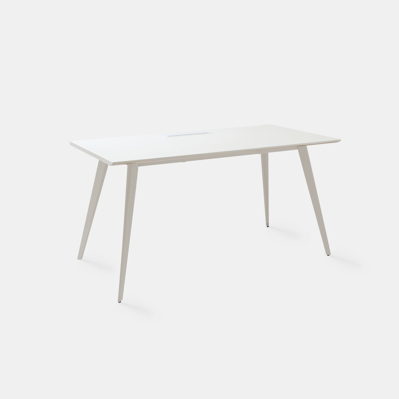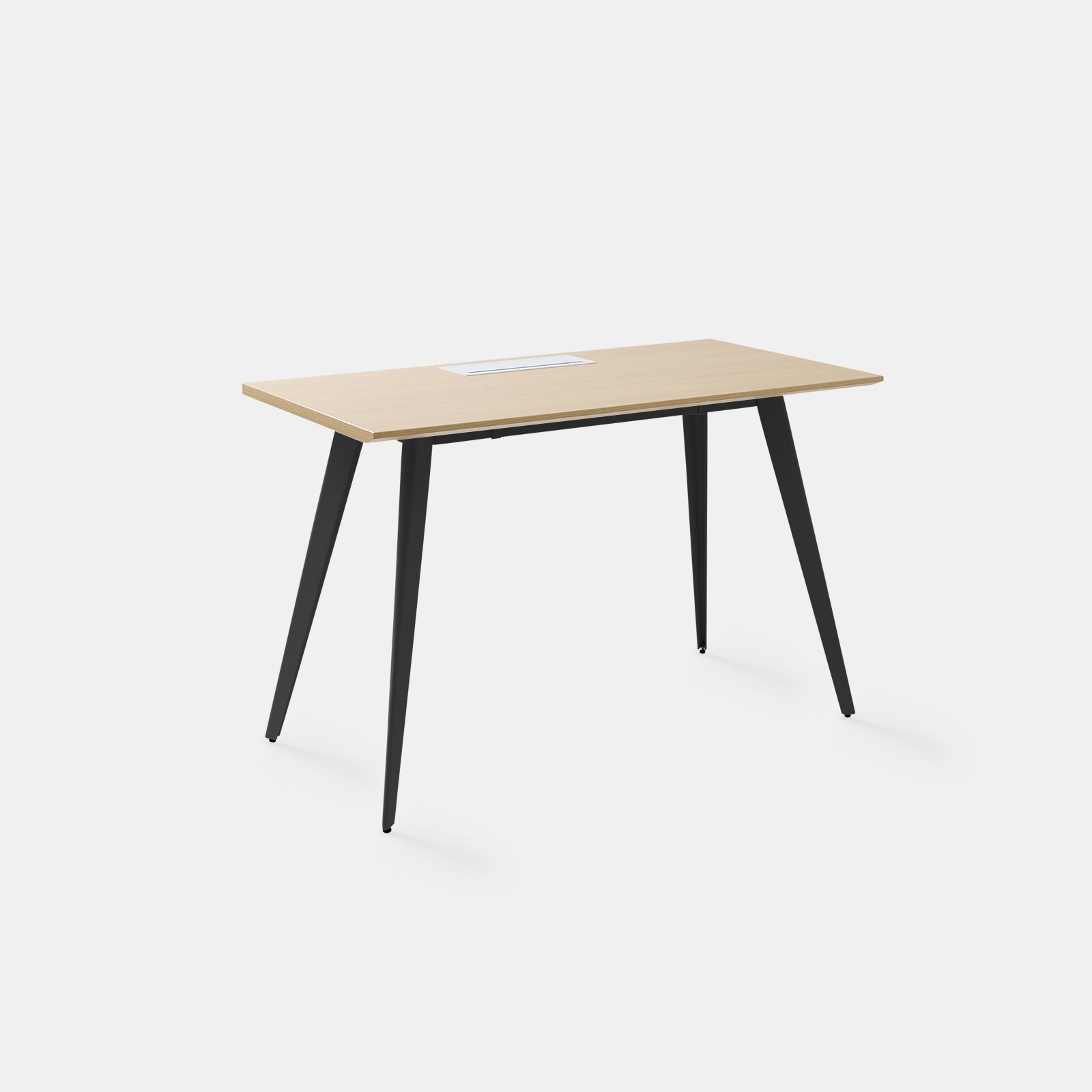 A versatile desktop featuring a sleek, minimalist design with stylish flared legs for optimal space below. Available in two size options to best suit your workspace needs. Optional in-desk power available.