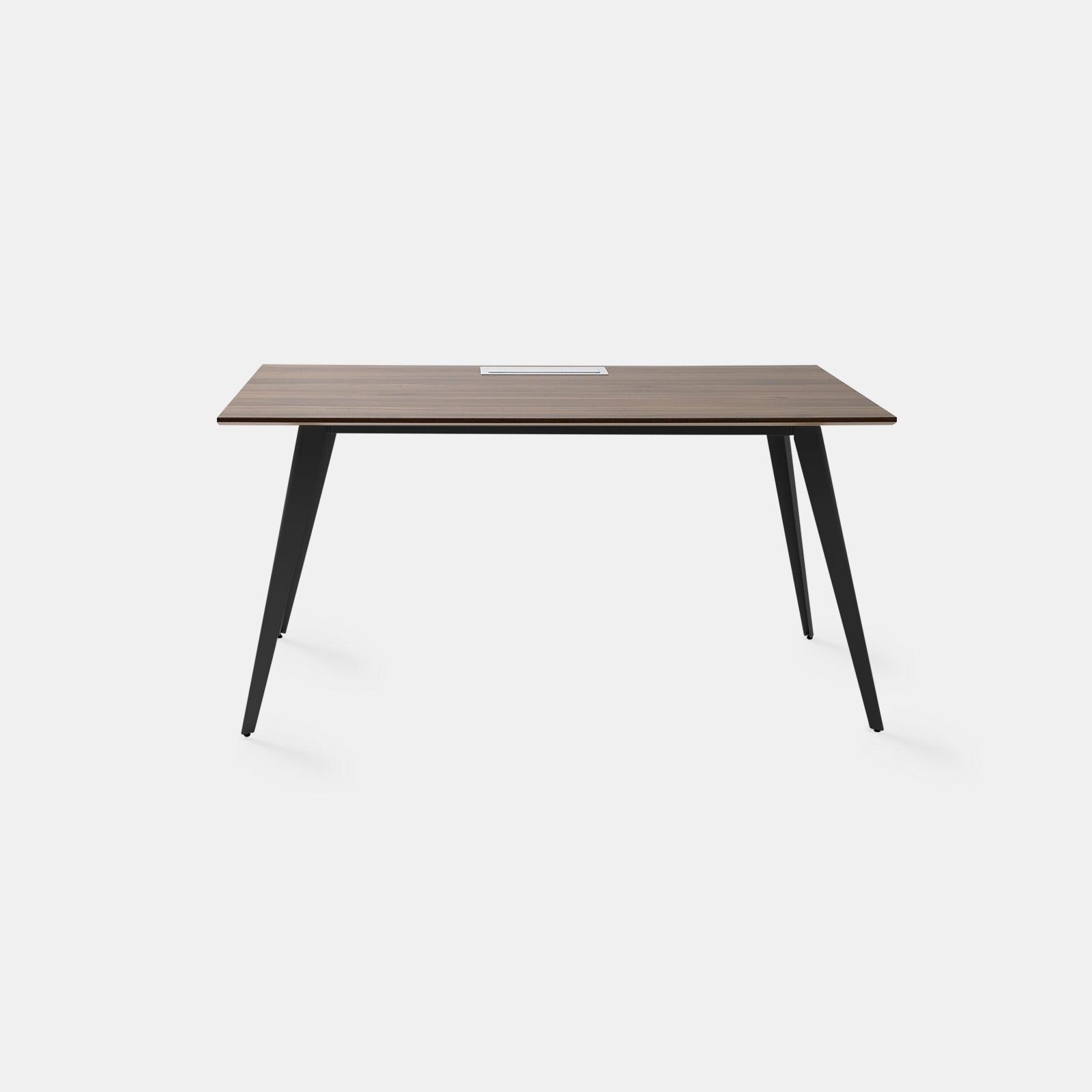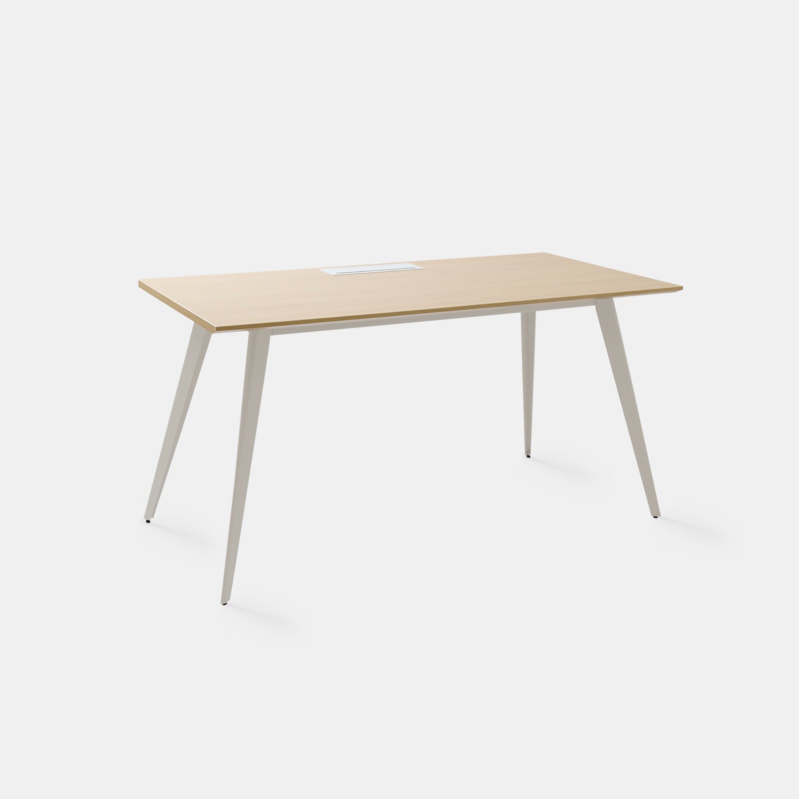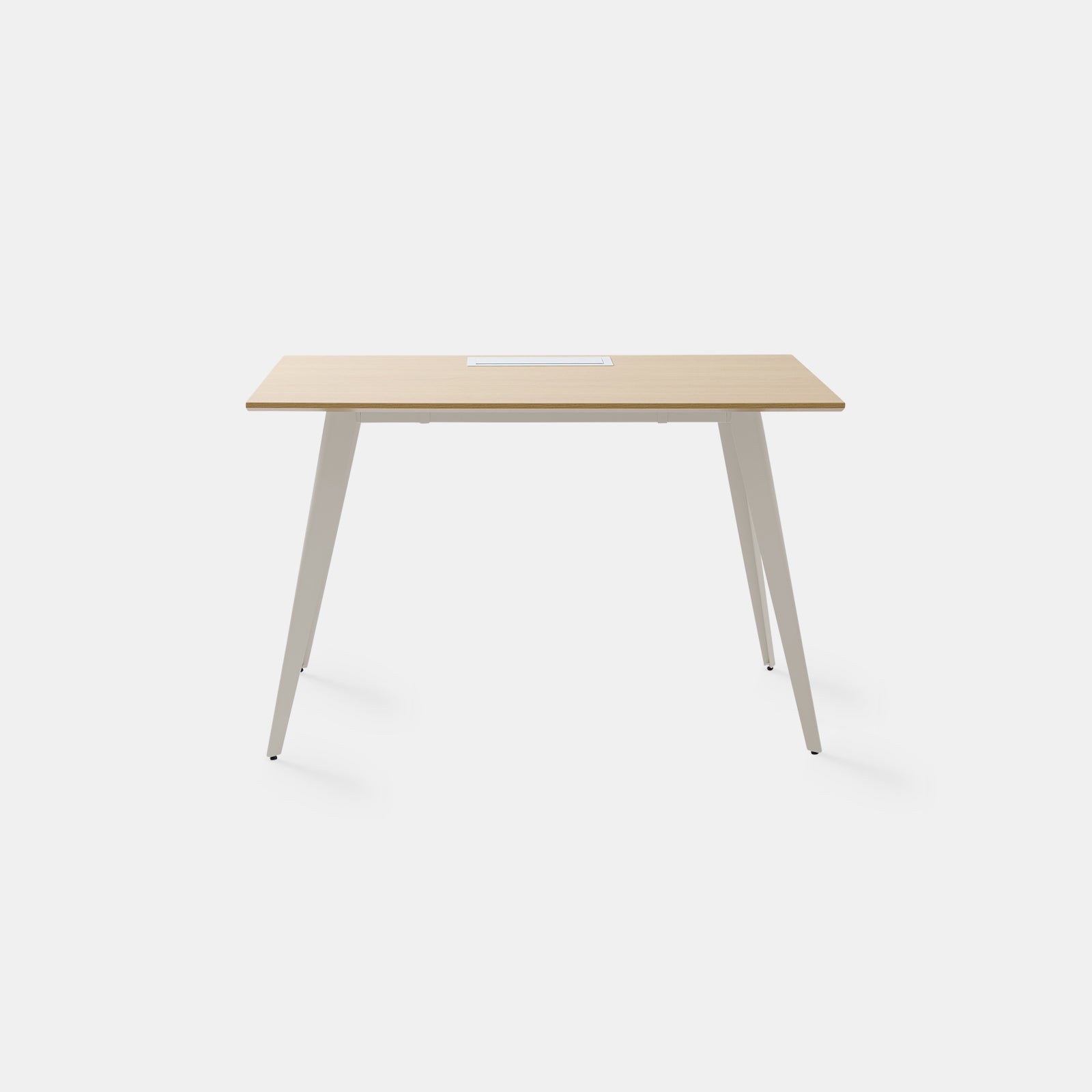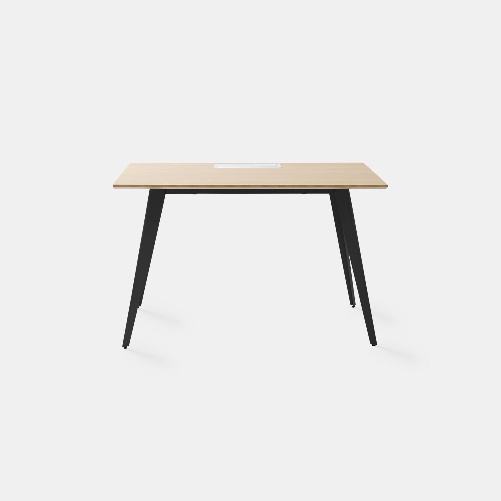 A versatile desktop featuring a sleek, minimalist design with stylish flared legs for optimal space below. Available in two size options to best suit your workspace needs. Optional in-desk power available.
