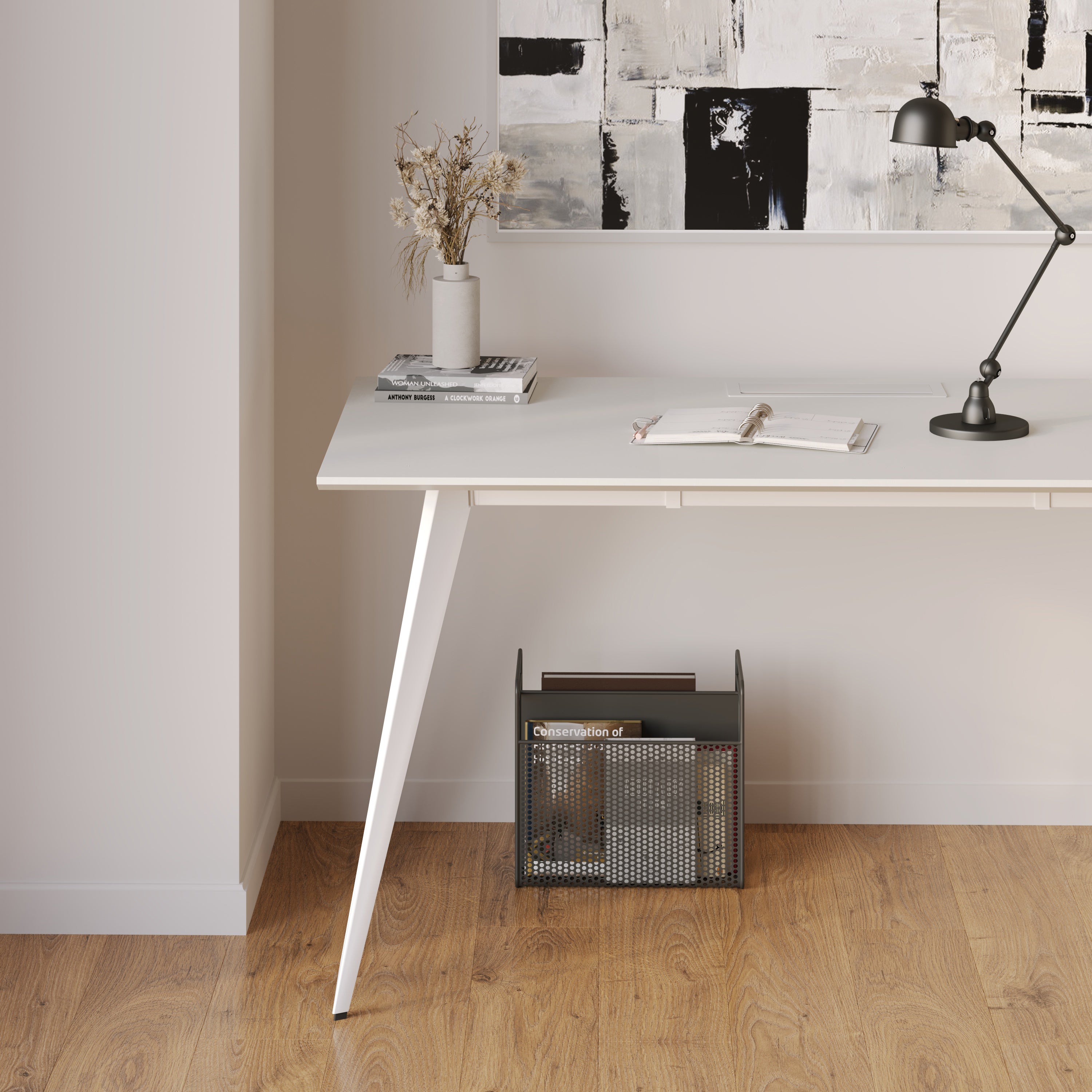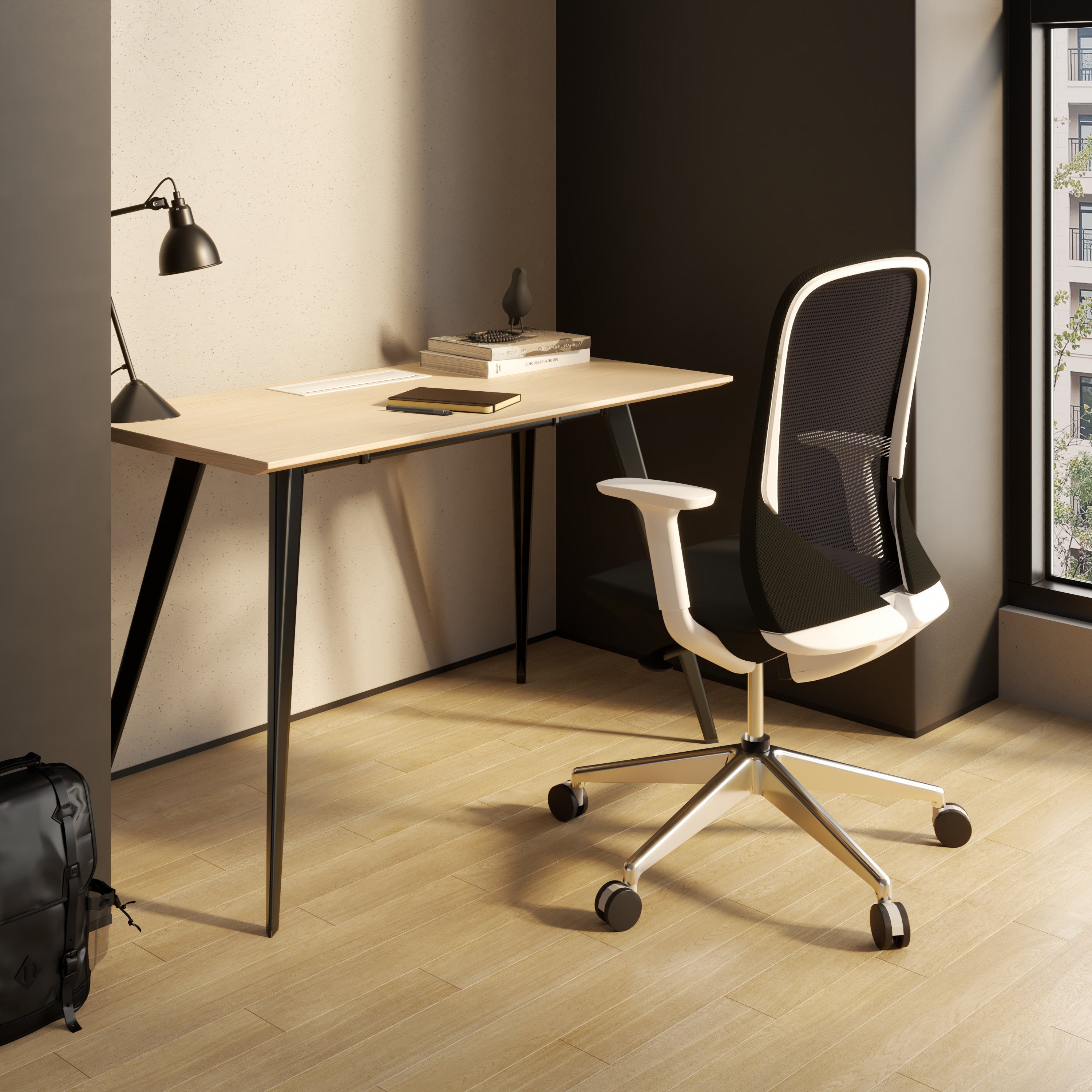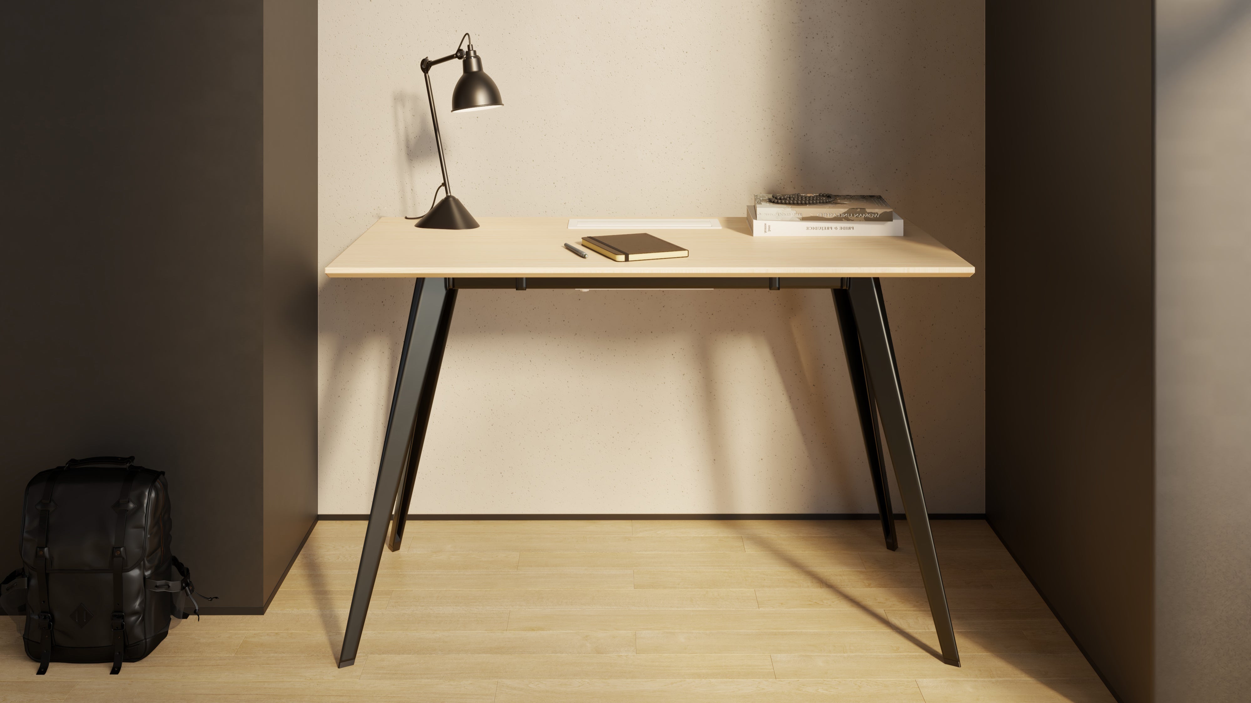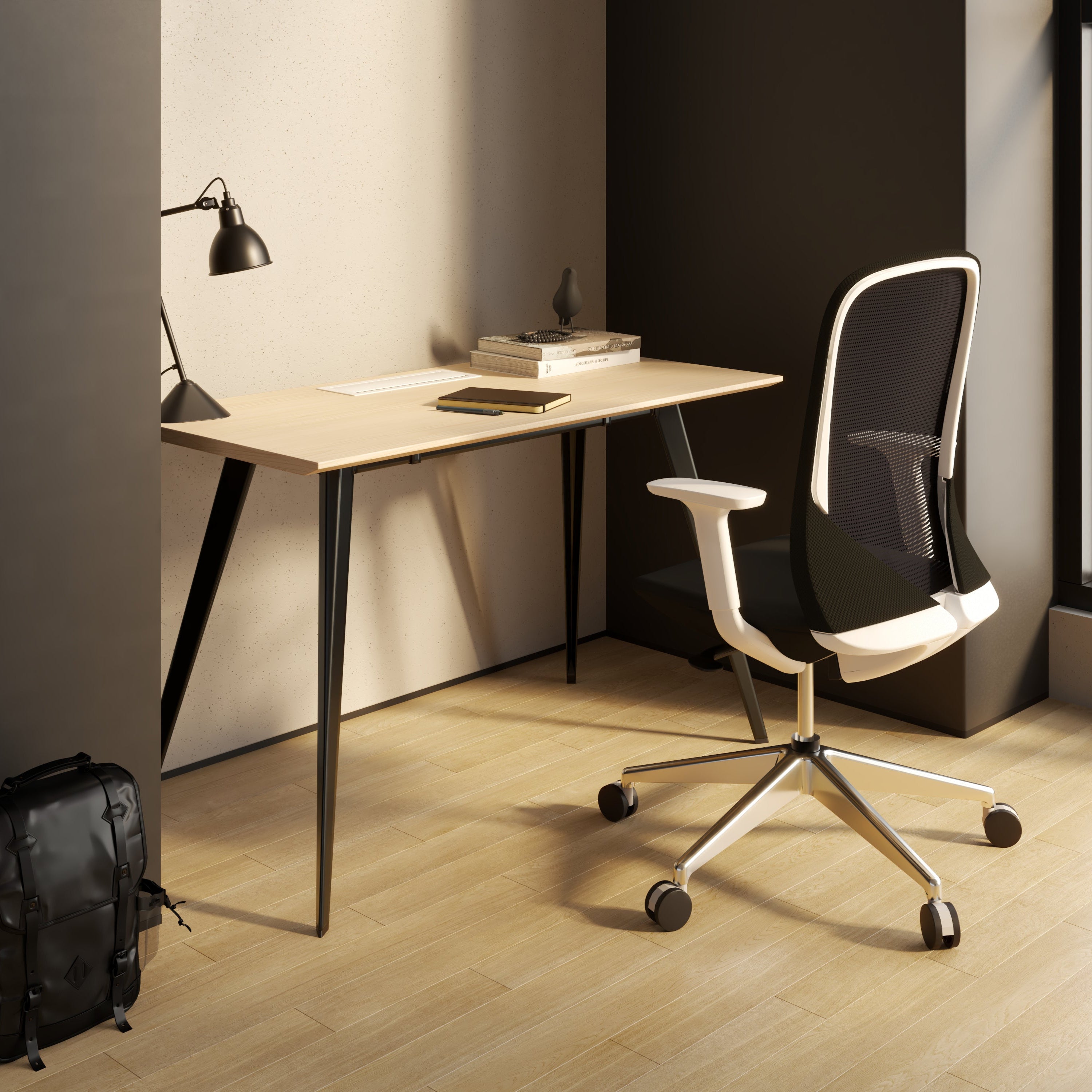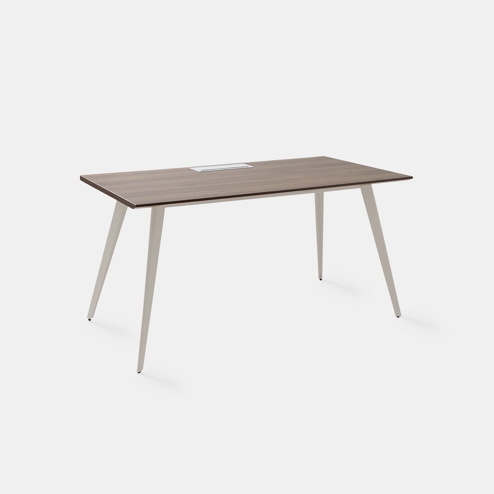 A versatile desktop featuring a sleek, minimalist design with stylish flared legs for optimal space below. Available in two size options to best suit your workspace needs. Optional in-desk power available.