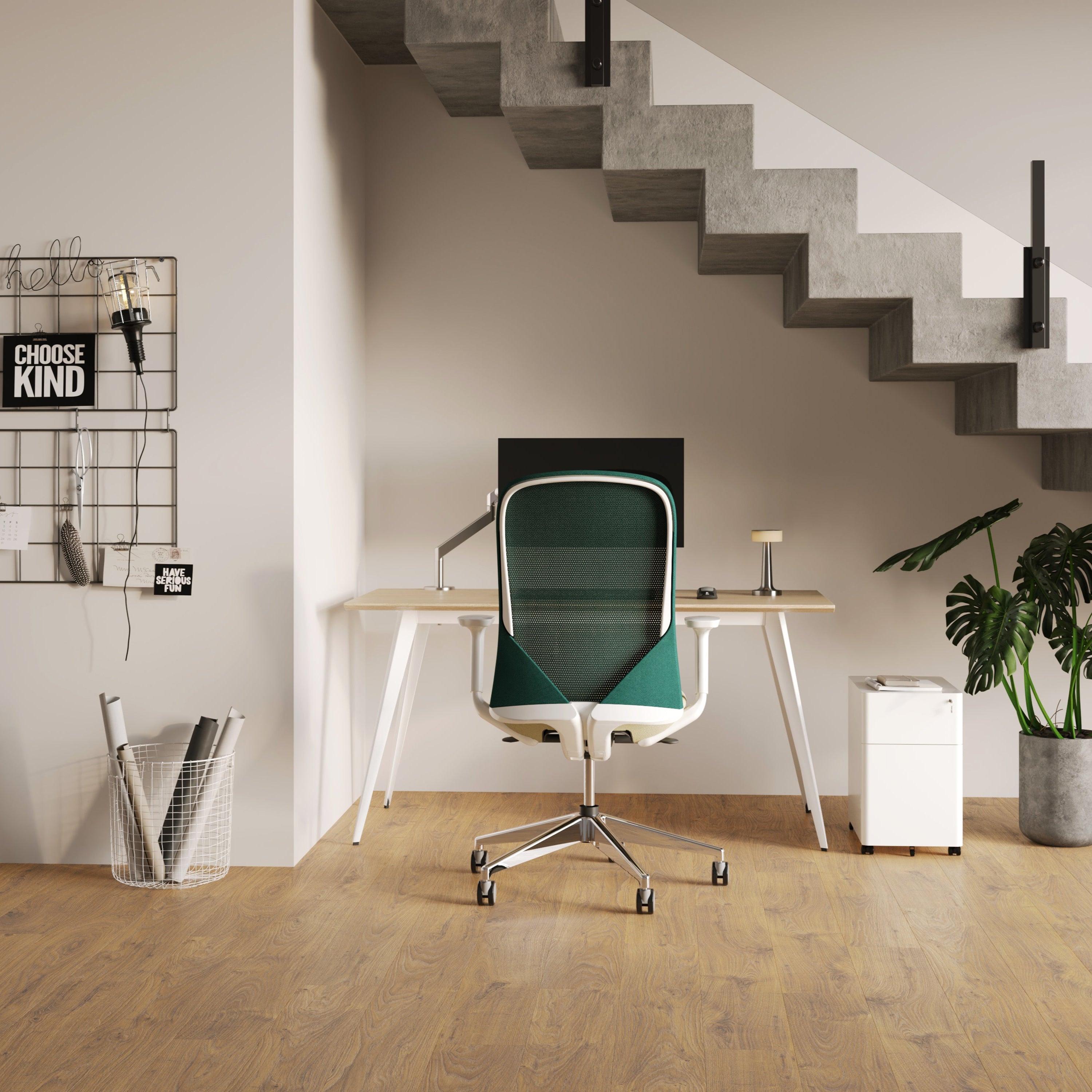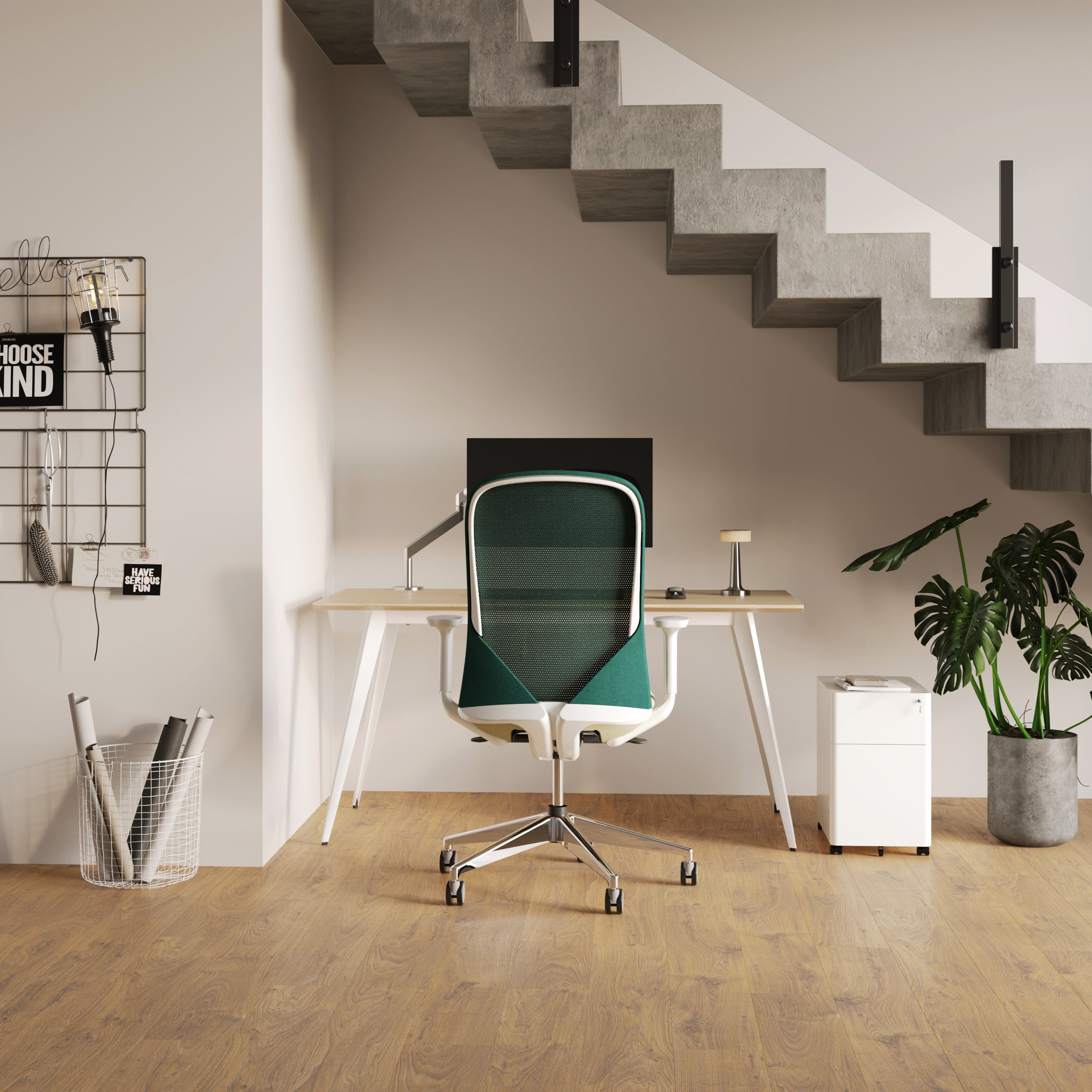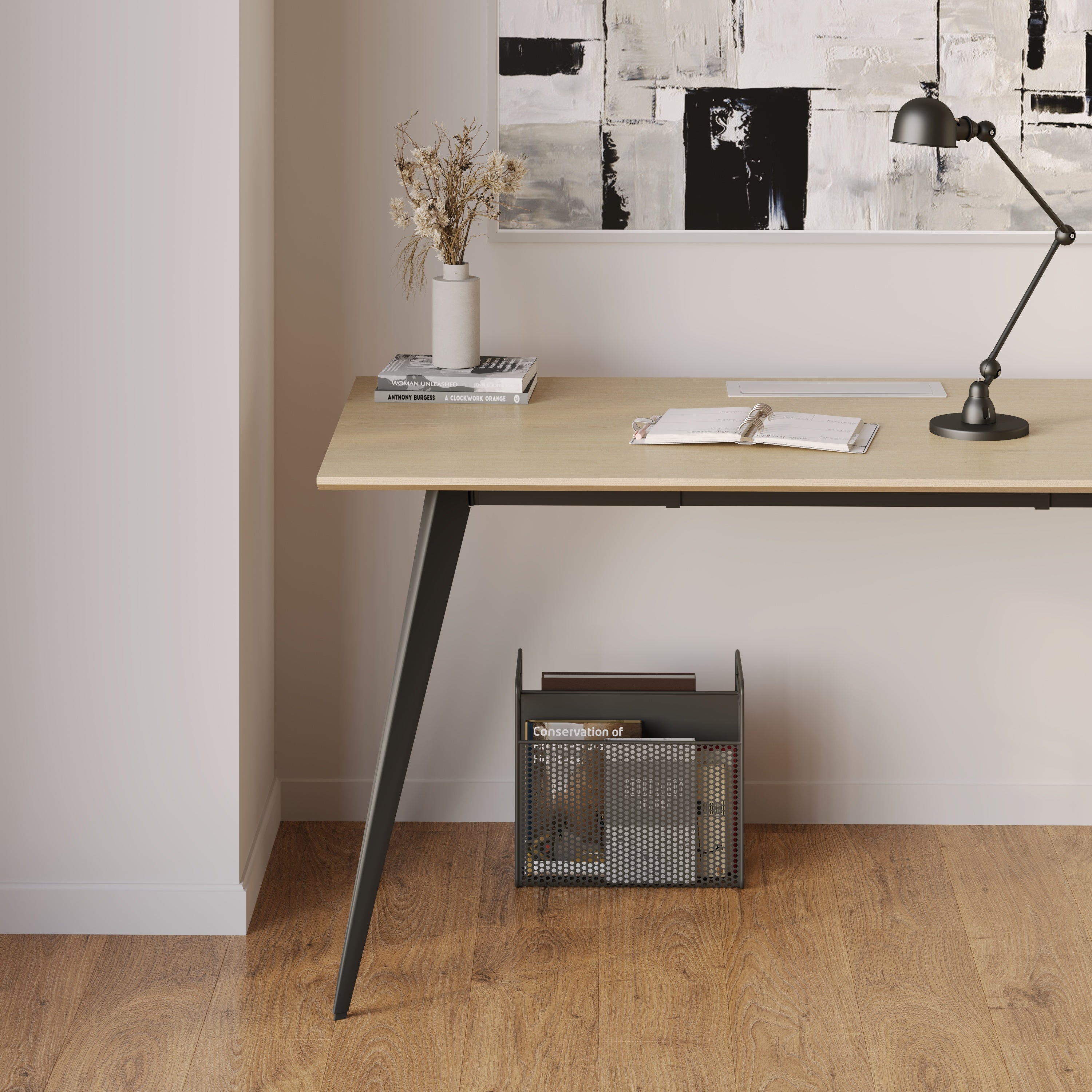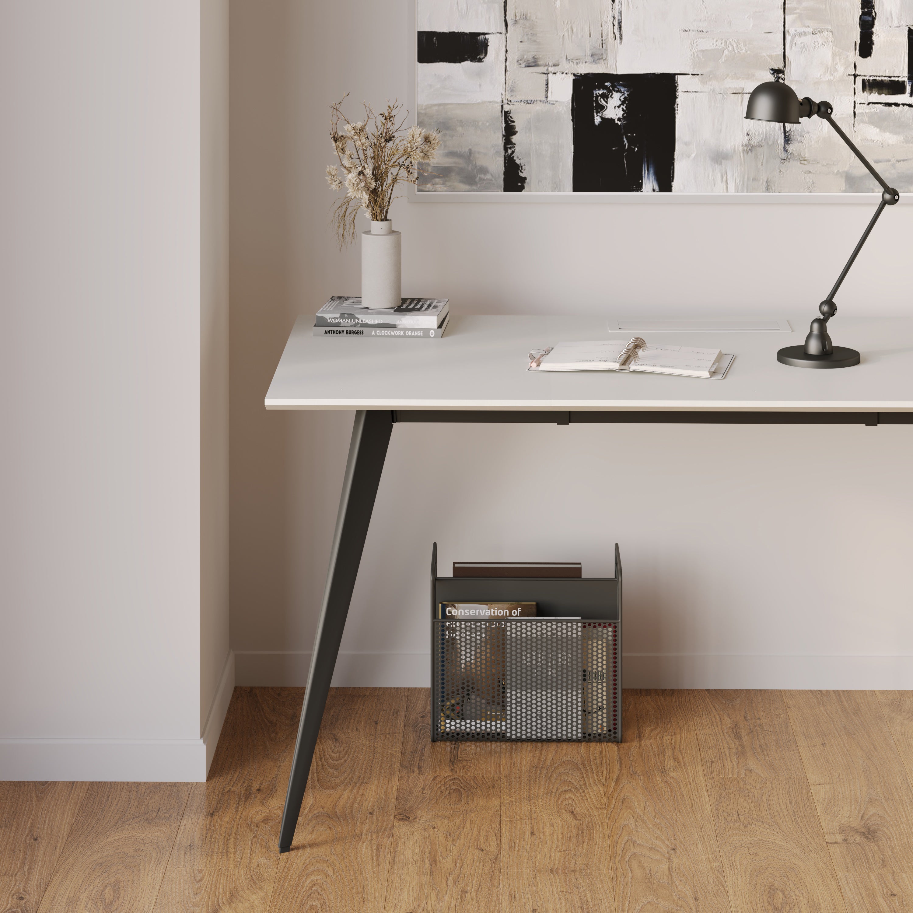 A versatile desktop featuring a sleek, minimalist design with stylish flared legs for optimal space below. Available in two size options to best suit your workspace needs. Optional in-desk power available.