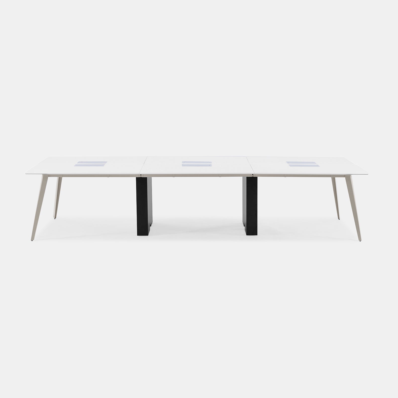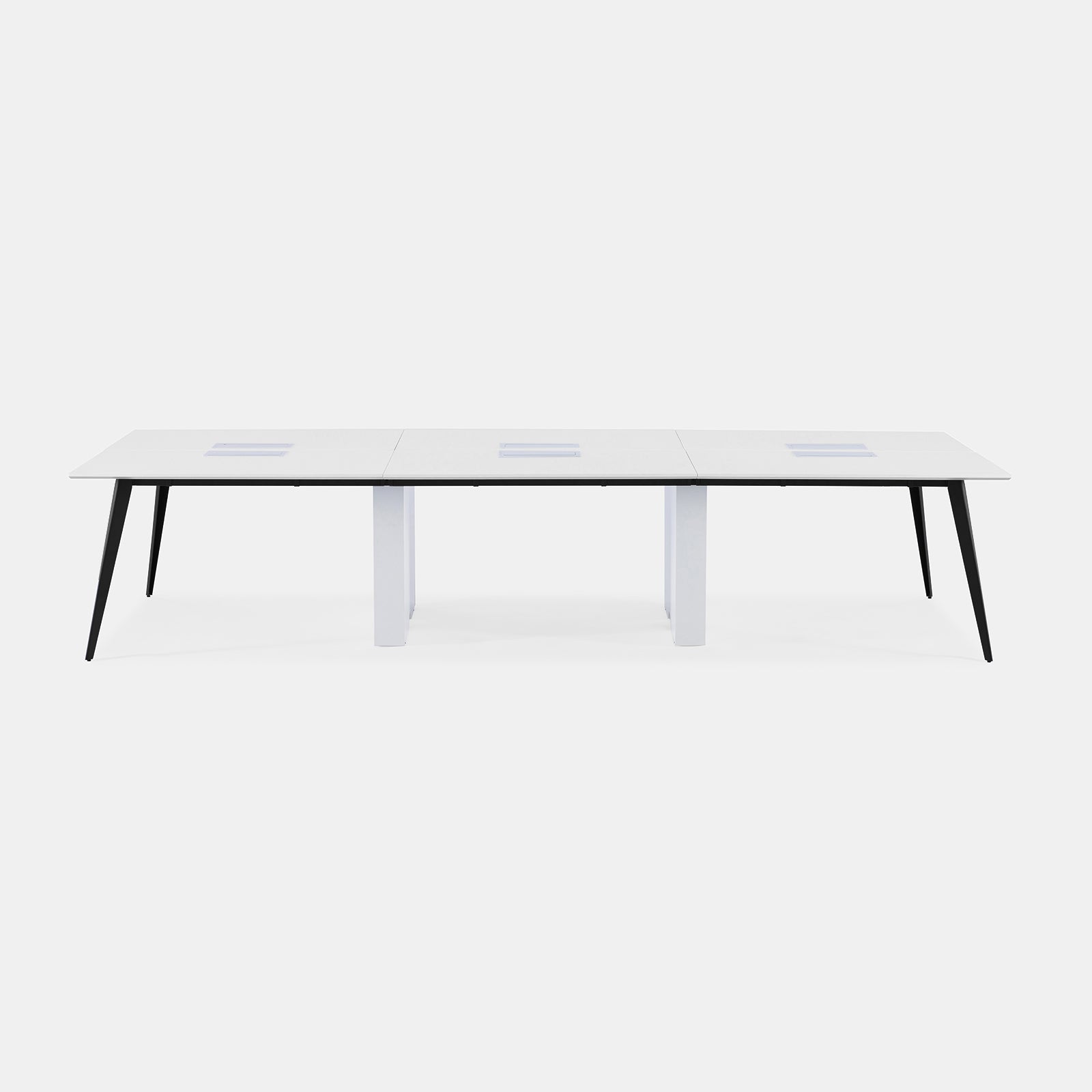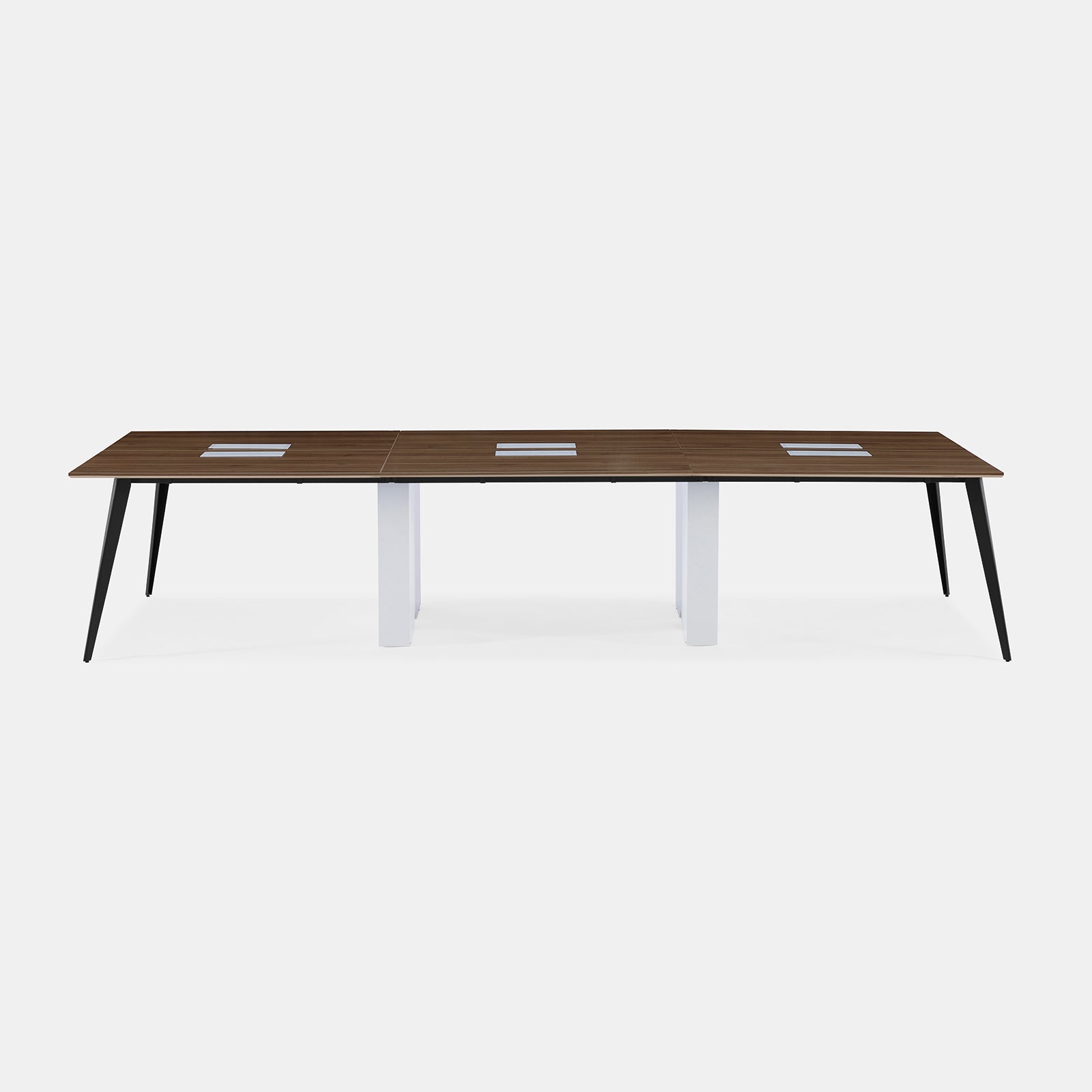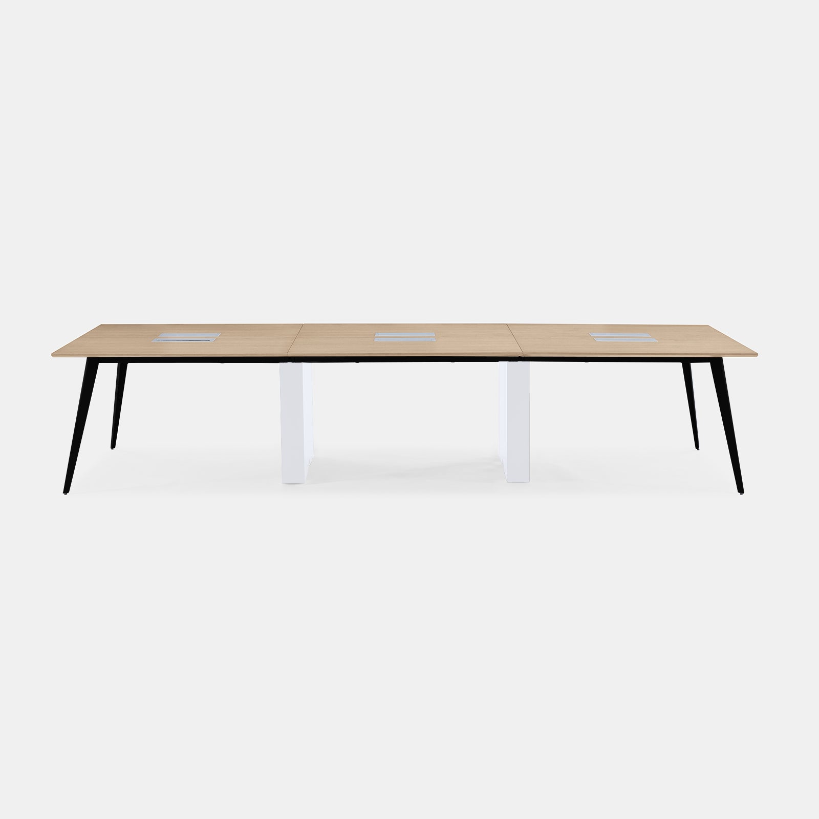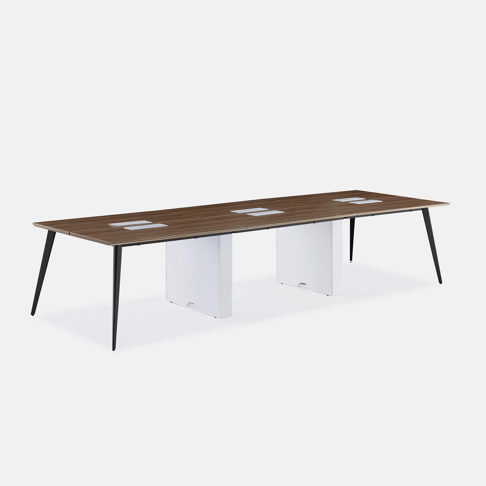 A versatile workstation for larger teams, featuring a sleek, minimalist design with stylish flared legs for optimal space below. Link multiple units together to best suit your workspace needs. Optional in-desk power available.