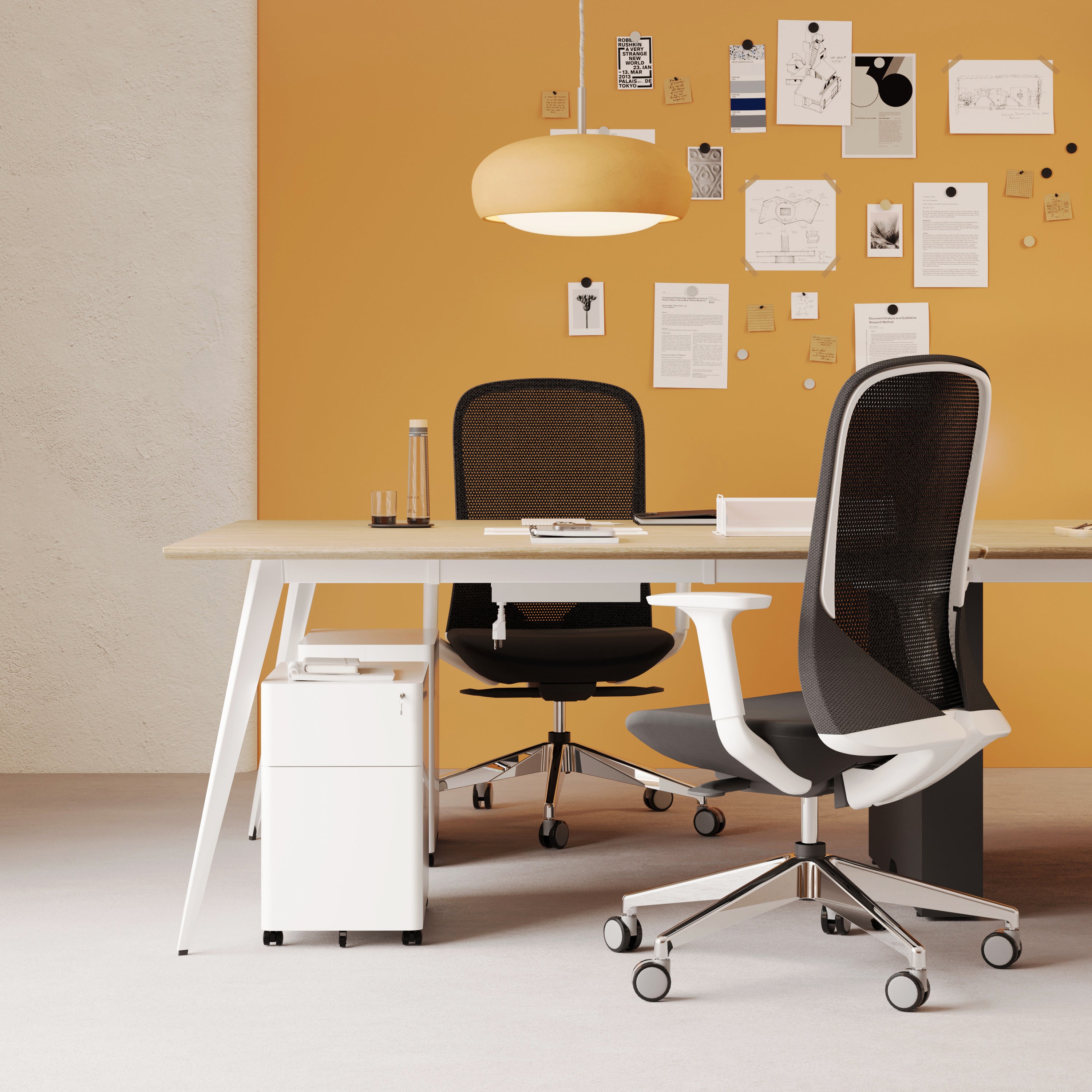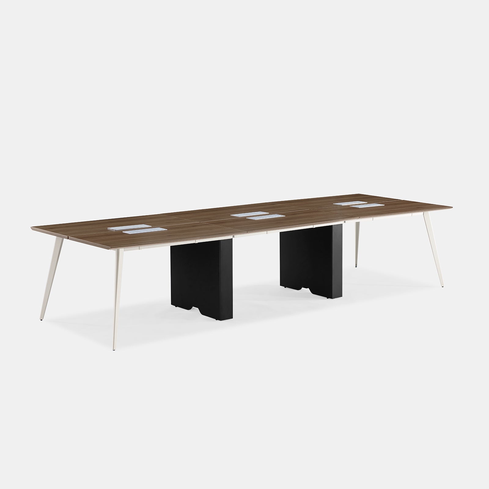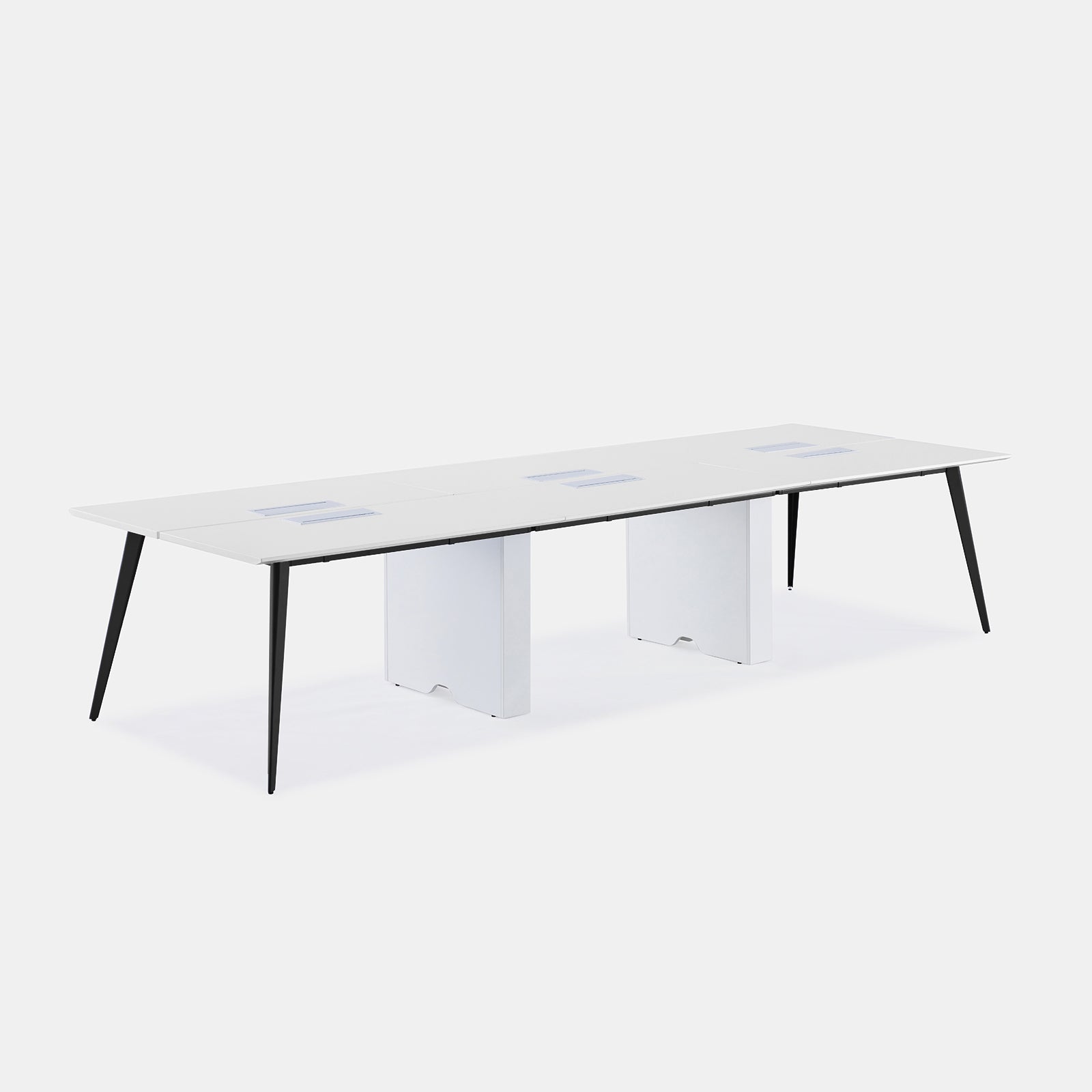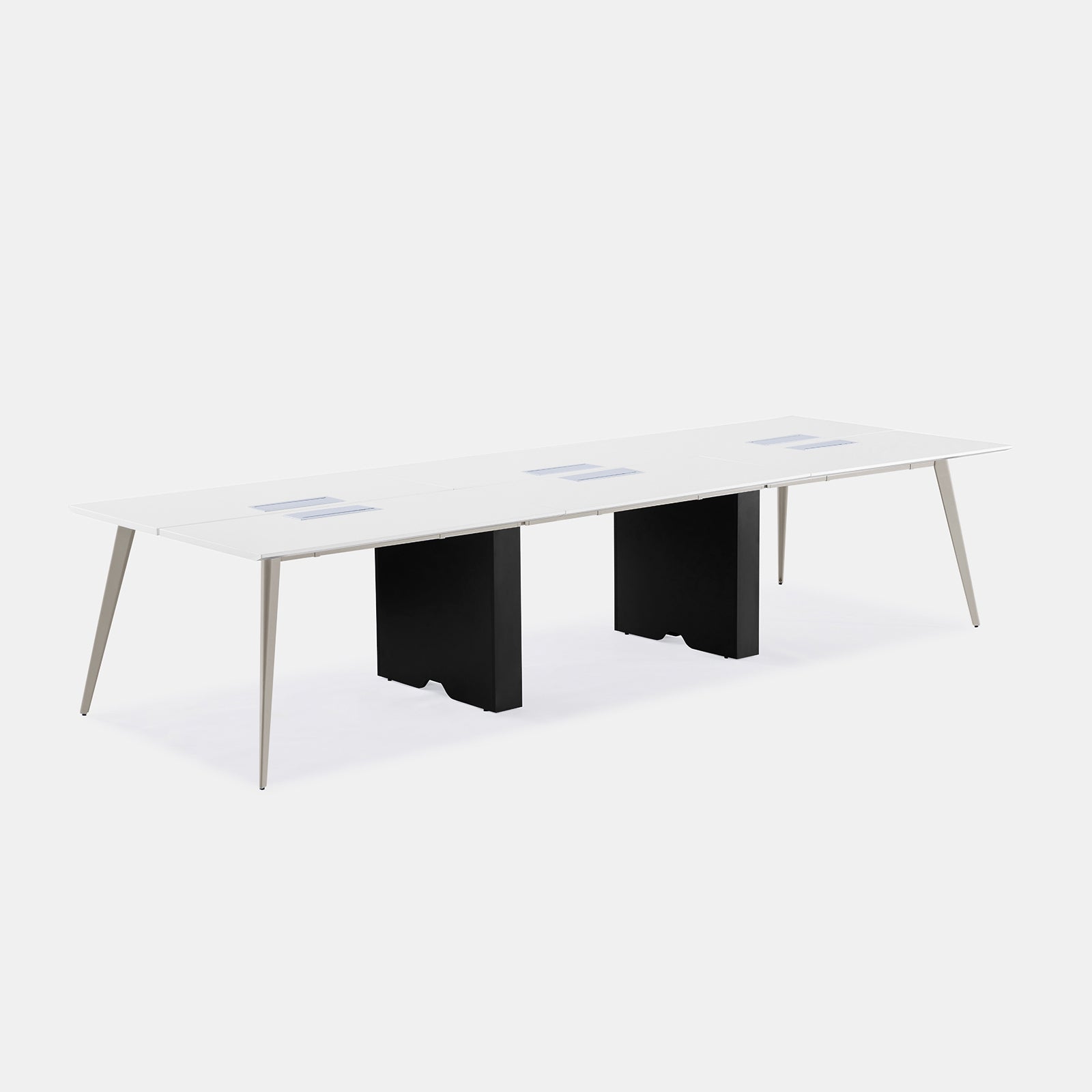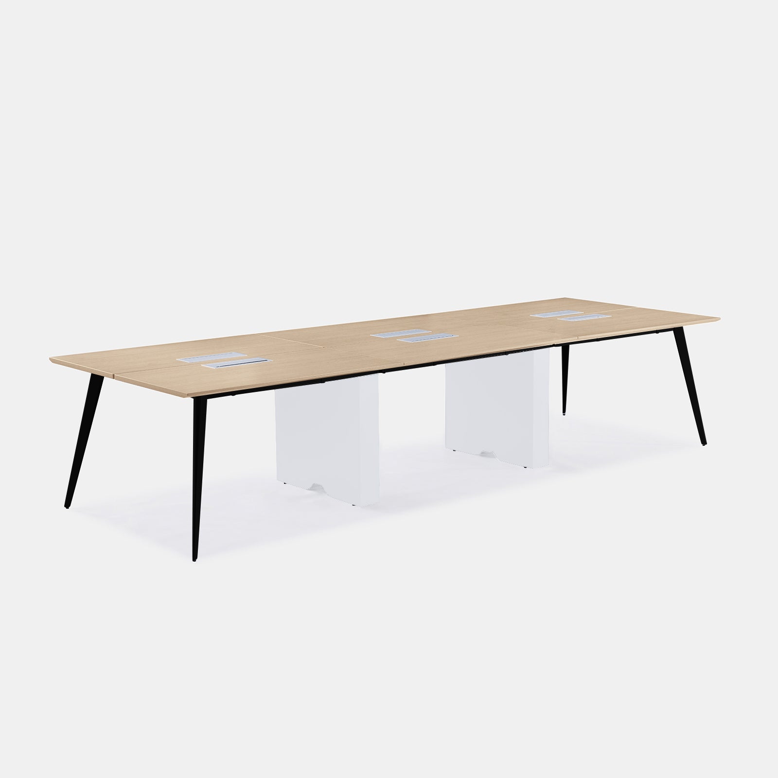 A versatile workstation for larger teams, featuring a sleek, minimalist design with stylish flared legs for optimal space below. Link multiple units together to best suit your workspace needs. Optional in-desk power available.